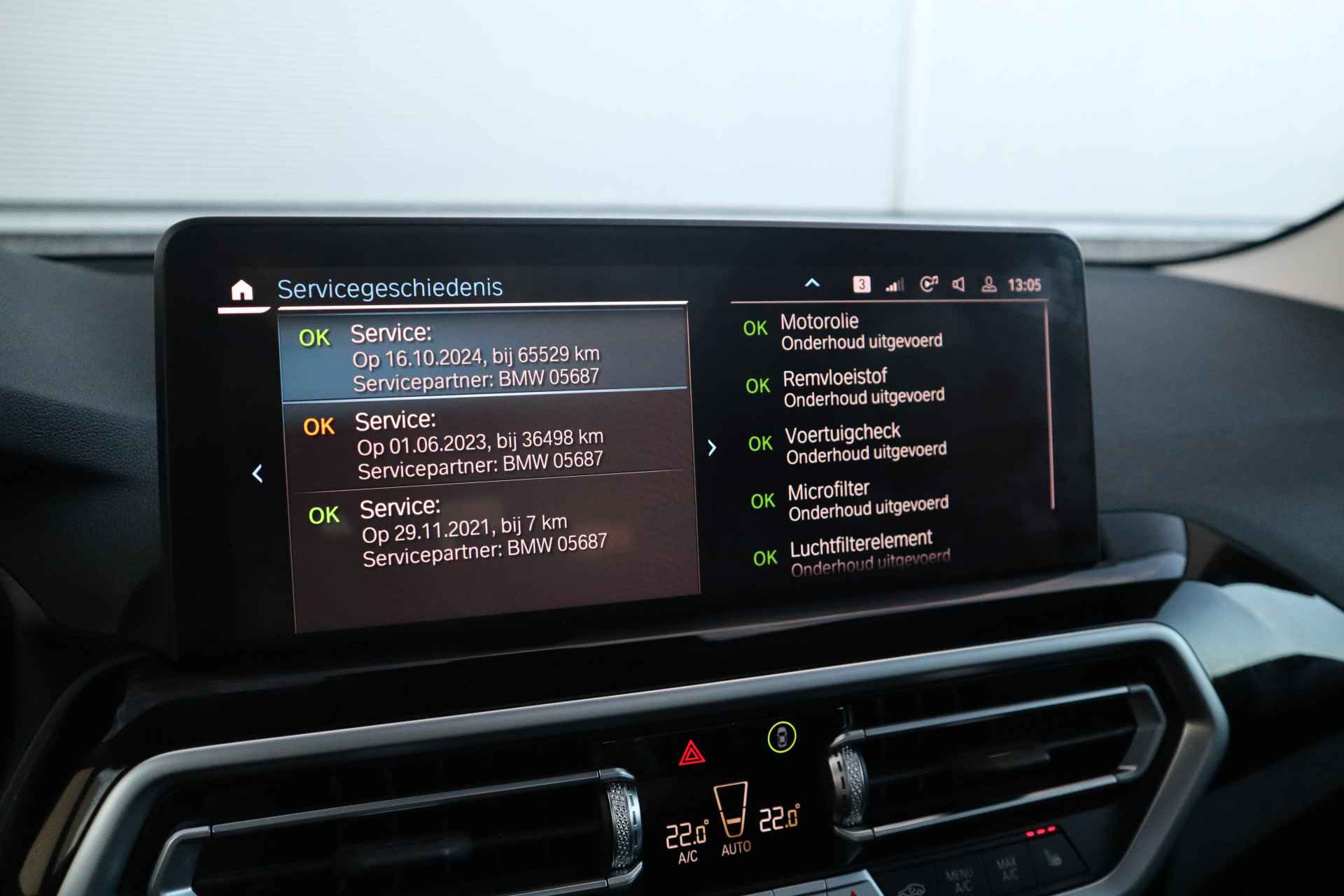 BMW X3 30e afkomstig van de eerste eigenaar en volledig dealer onderhouden. Voorzien van Panorama dak, leder interieur met sportstoelen, 360 graden camera, HiFi geluidsysteem, rolgordijnen in achterdeuren en donker glas. Afleverkosten 995,- incl 12 maanden garantie, reinigen, brandstof en afleverbeurt. Bel voor bezichtiging en beschikbaarheid 06-34720075